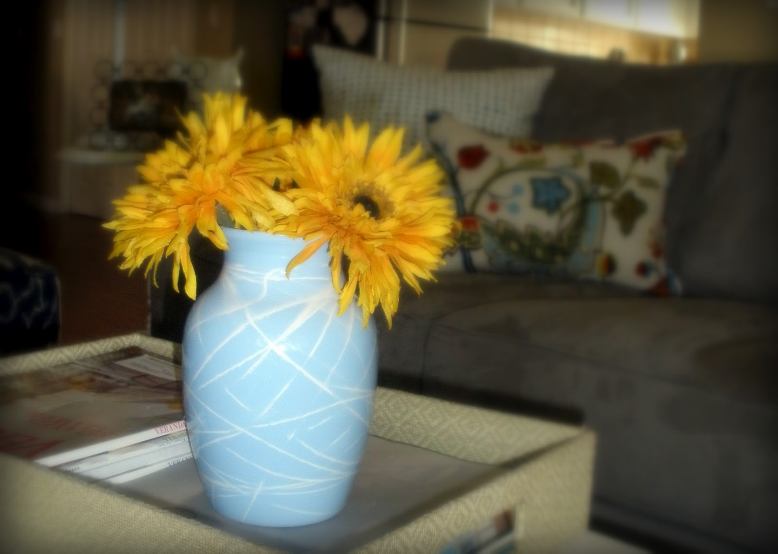 A while ago I bought a basic clear glass vase at the dollar store because I just needed something smaller then what I had to put some flowers in. It was nothing fancy, just a vase that cost me a dollar. It looked a whole lot like this.